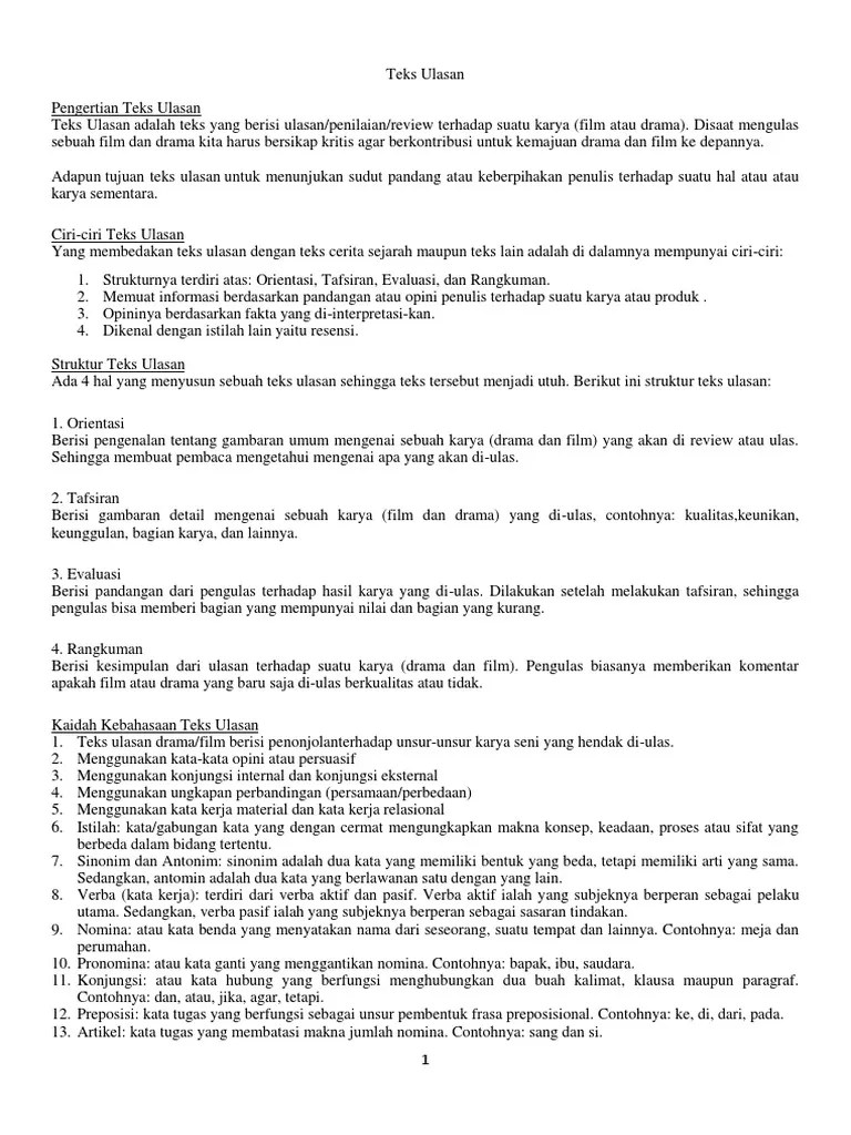 Contoh teks ulasan singkat pendek lengkap baik benar tentang berita novel buku film novel lagu cerita pendek cerpen puisi drama pelajaran .